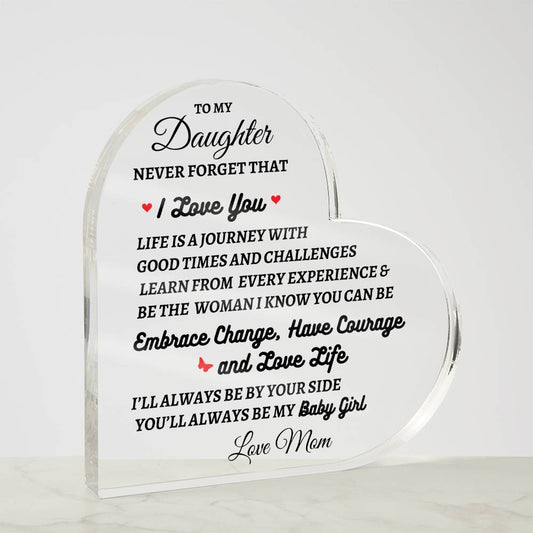 To My Daughter | Never Forget That I Love You | Printed Acrylic Heart Plaque